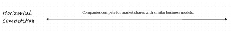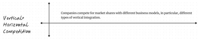 For example, the three dominant cloud computing platforms—AWS, Google Cloud, and Microsoft Azure—compete horizontally with similar and well-established business models. They optimize cost-efficiency and performance to vie for market share.