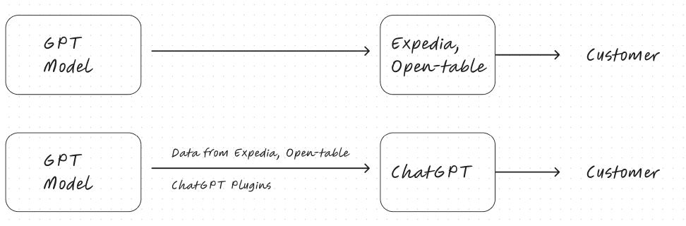 With ChatGPT plugins, users face a single platform — ChatGPT — which consolidates data to perform various requests. Now, OpenAI not only develops phenomenal AI models to power the next revolution but also becomes the customer-facing application that controls data and networks.