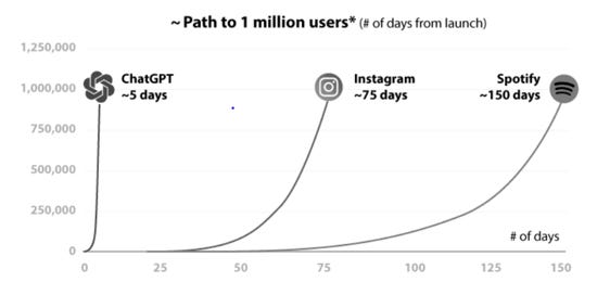 Powered by its proprietary language model, ChatGPT became the fastest-ever application in terms of customer acquisition historically, reaching 1 million users in just 5 days.